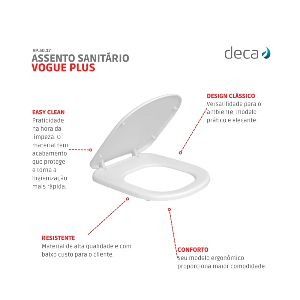 - Compatível com diversos modelos de vaso sanitário Deca