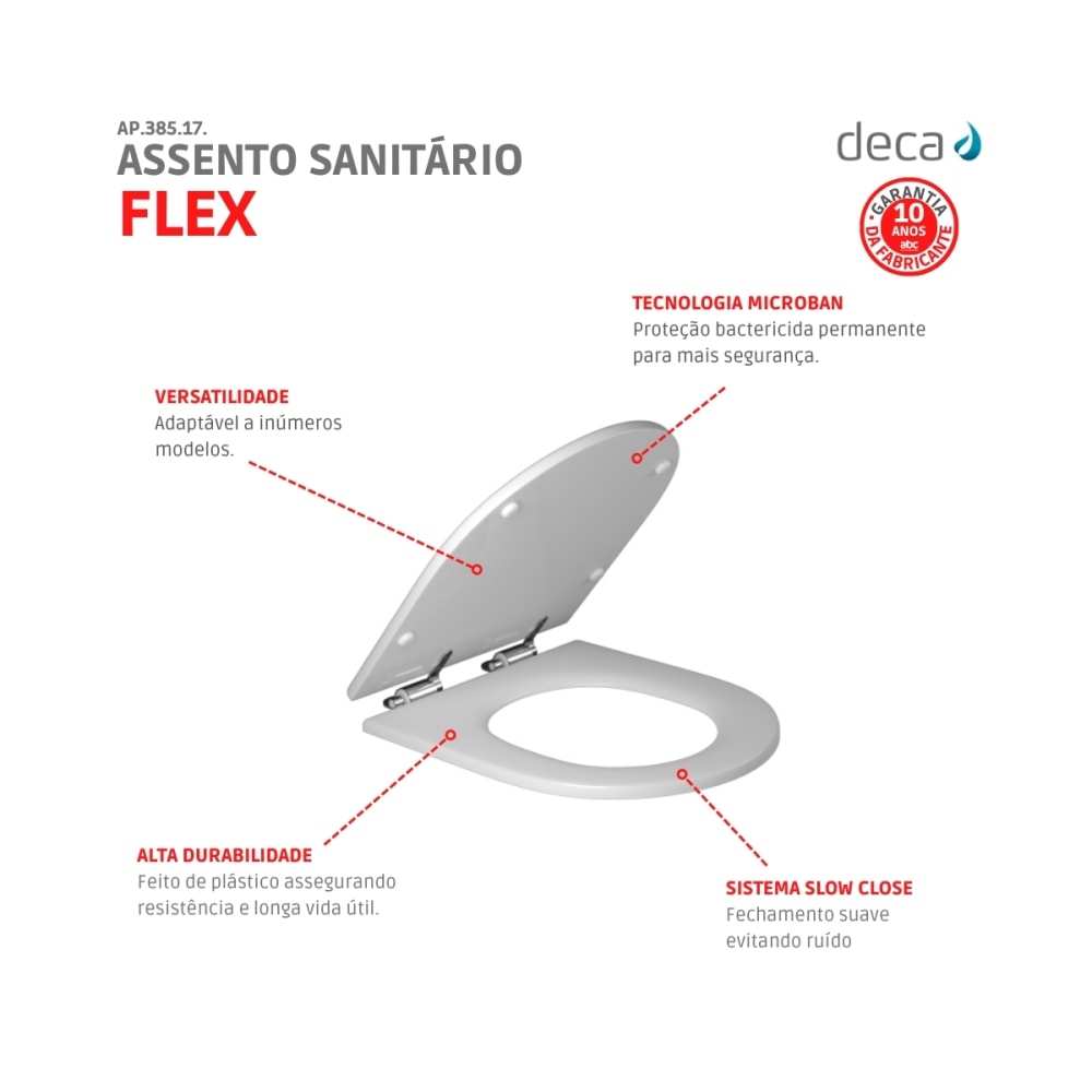 O Assento Sanitário em Poliéster Slow Close com Microban Branco Gelo tem design com borda frontal arredondada que garante maior conforto ao usuário, além de tecnologia slow close que fecha suavemente a tampa com apenas um toque. Produzido em poliéster, possui fixações produzidas em ligas de cobre que garantem maior durabilidade e resistência. É compatível com as bacias Link, Duna, Nuova, Level e Carrara.