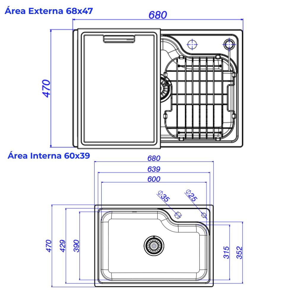 - Fundo Facetado com Inclinação Ideal: Garante o escoamento eficiente da água, evitando acúmulo e facilitando a limpeza.