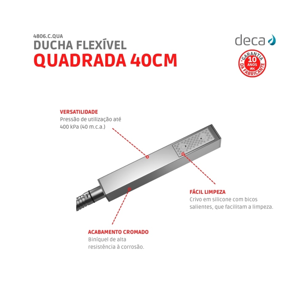 A Ducha Manual Deca Quadrada 1/2" vem com um toque moderno para o seu projeto, sendo um acessório aliado na busca por ambientes mais amplos e bem aproveitados, sem abrir mão de um banho quentinho e revitalizante. Com formas modernas; a ducha quadrada tem a ergonomia necessária para um banho confortável; aliada à um design exclusivo.