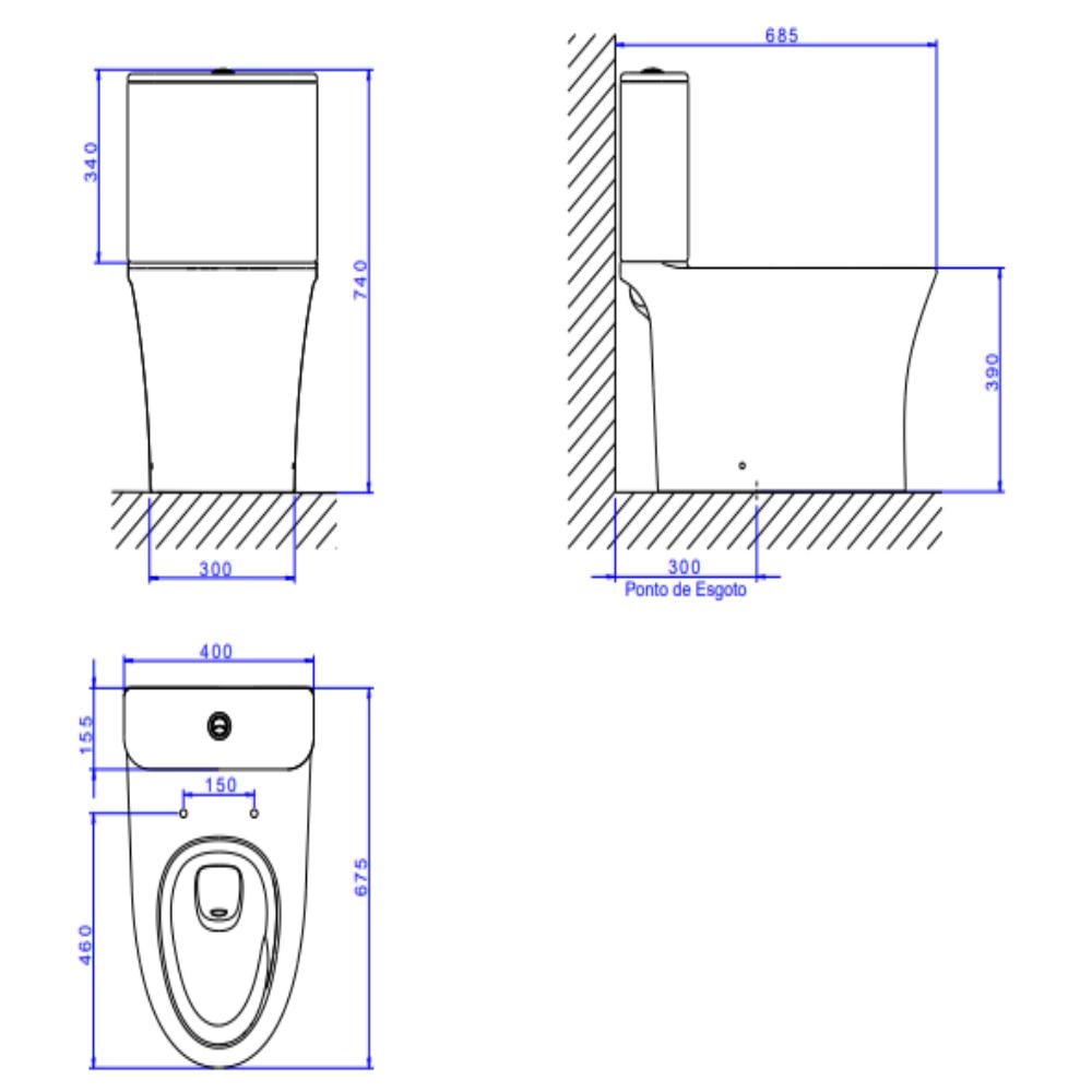 - Kit Completo - Acompanha vaso sanitário, caixa acoplada, acionamento e assento, garantindo praticidade e economia na instalação.