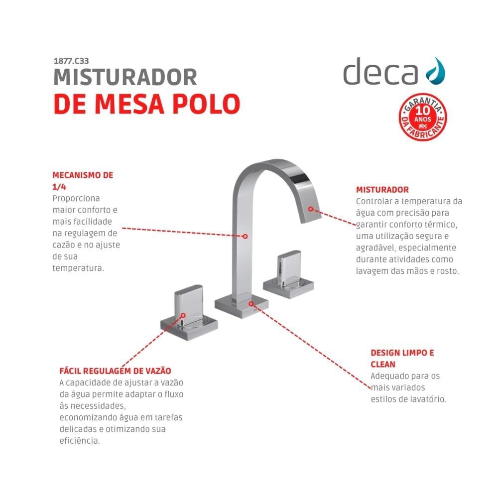 Seu design clean e contemporâneo valoriza o ambiente, sendo ideal para lavatórios com cubas de apoio. O sistema de duplo acionamento permite controlar com precisão a temperatura e o volume da água, oferecendo conforto no uso diário. Fabricado com materiais de alta qualidade, o acabamento cromado garante resistência à corrosão, brilho duradouro e fácil manutenção. Um produto que alia funcionalidade, durabilidade e o estilo marcante da linha Polo da Deca.