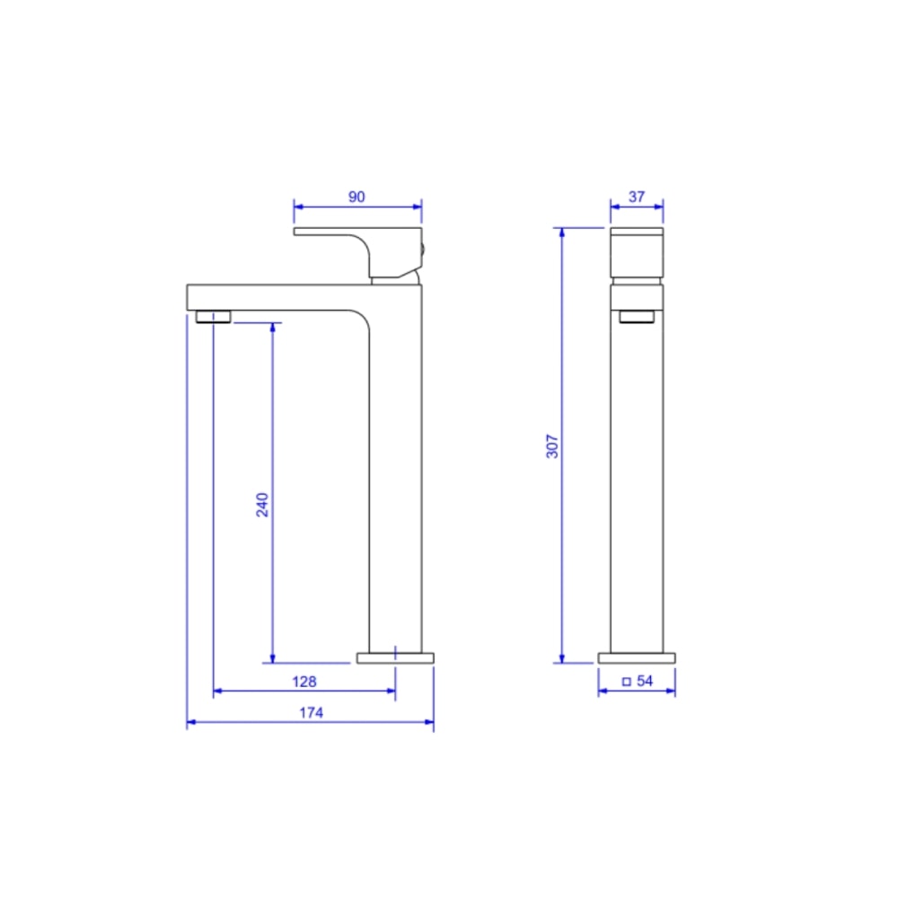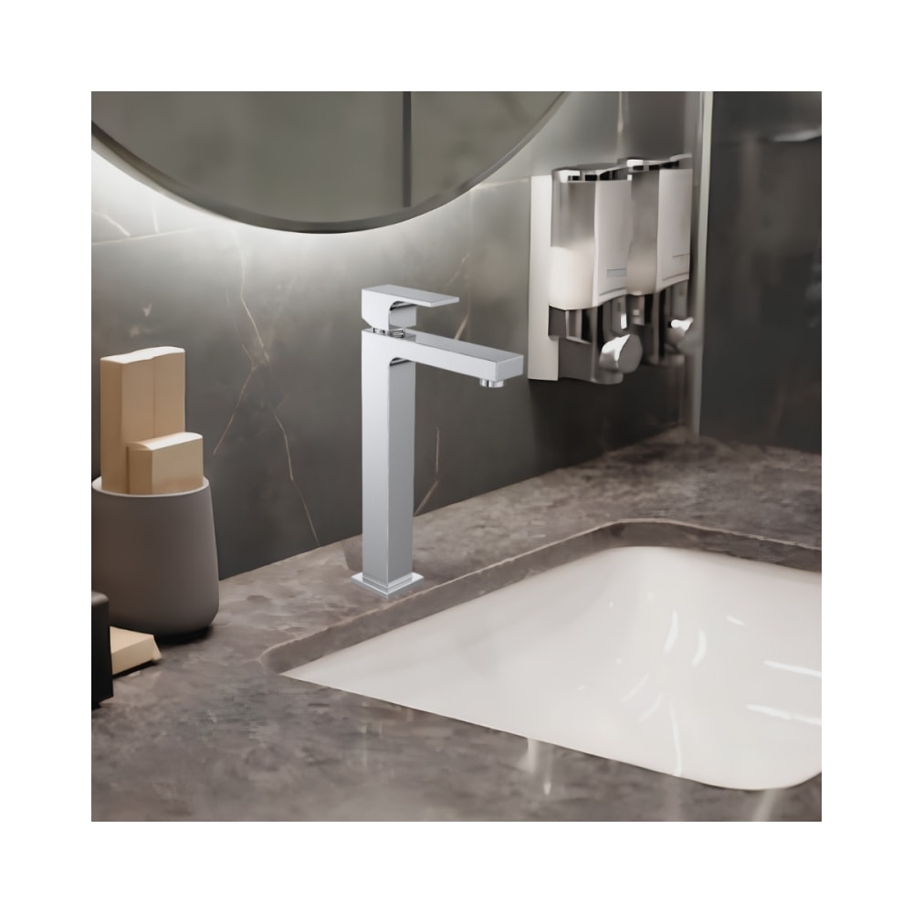 - Bica alta que proporciona maior espaço para lavagem das mãos ou do rosto.