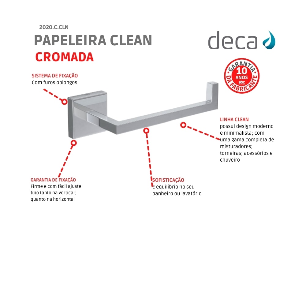 A papeleira da linha Clean é perfeita para projetos que buscam sofisticação e equilíbrio. A linha Clean possui design moderno e minimalista; com uma gama completa de misturadores; torneiras; acessórios e chuveiro; o que reforça sua versatilidade; para os mais diferentes projetos.