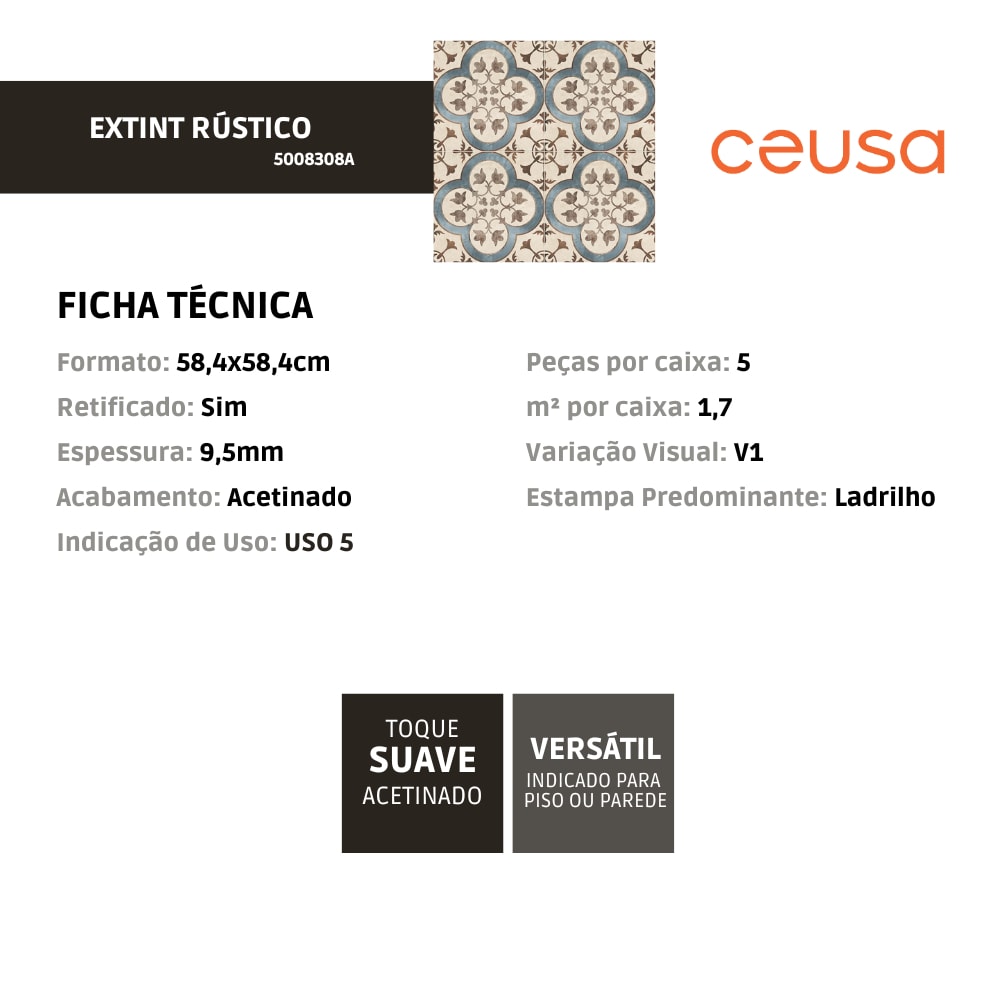 O Porcelanato Ceusa Ladrilho Mediterrâneo 58,4x58,4cm Retificado é perfeito para trazer o charme e a elegância dos clássicos ladrilhos mediterrâneos ao seu ambiente. Seu design detalhado e sofisticado oferece um visual único que transforma qualquer espaço em um cenário encantador e acolhedor. Com bordas retificadas, o acabamento é preciso e uniforme, facilitando a instalação e garantindo um visual mais clean. Este porcelanato é ideal tanto para áreas internas quanto externas, combinando durabilidade e resistência com uma estética atraente. Renove sua casa com o toque distinto e atemporal do Porcelanato Ladrilho Mediterrâneo.