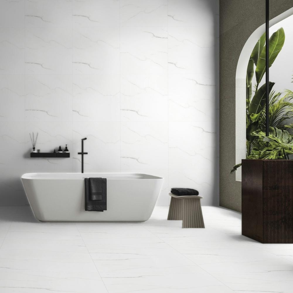 O Porcelanato Ceusa Statuario White 90x90cm Natural Retificado combina sofisticação e modernidade com design inspirado no mármore Statuário. Seu acabamento natural proporciona elegância discreta e toque suave, enquanto as bordas retificadas permitem juntas mínimas, garantindo um visual contínuo e uniforme. Ideal para ambientes internos que buscam charme, amplitude e requinte.