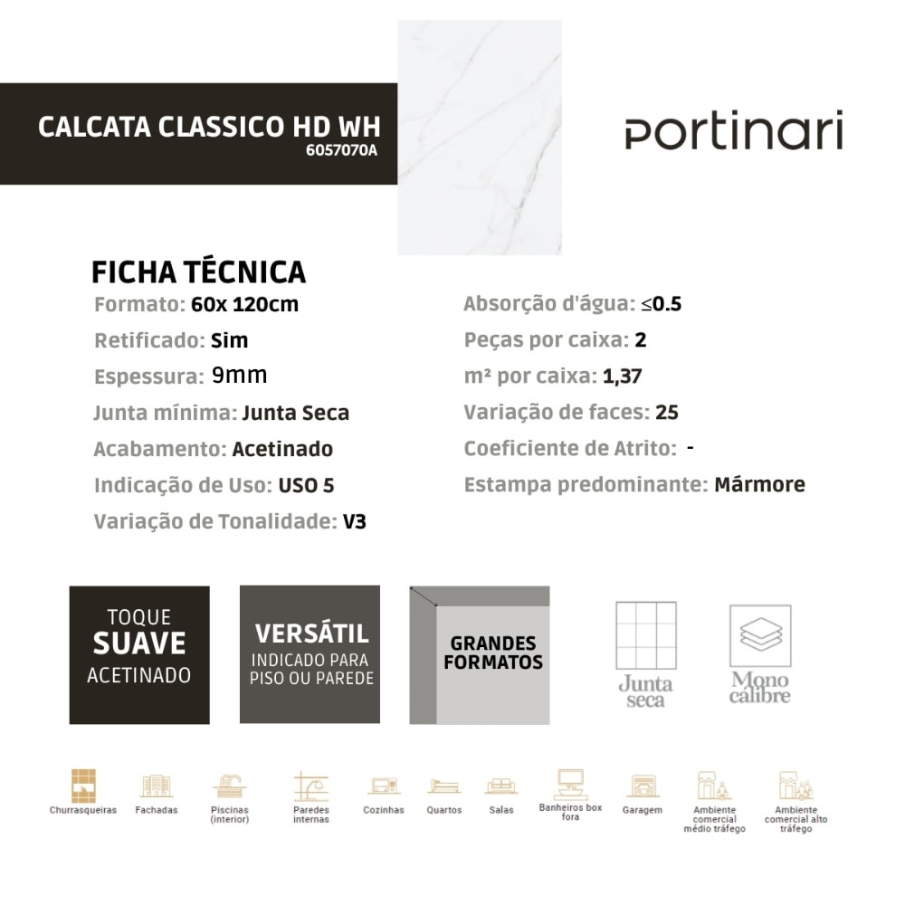 O Porcelanato Portinari Calacata Clássico Acetinado 60x120cm traz a elegância e sofisticação do mármore italiano para o seu ambiente. Com uma reprodução fiel do Calacata Branco, sua superfície acetinada e bordas retificadas oferecem um acabamento impecável, ideal para quem busca requinte em cada detalhe. Transforme seus espaços com a beleza atemporal deste porcelanato exclusivo. Confira agora na ABC da Construção e garanta o seu!