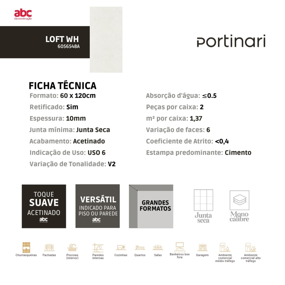 Os porcelanatos são versáteis e se adaptam facilmente a diferentes ambientes, destacando-se pela durabilidade e facilidade de manutenção. Sua baixa absorção de água o torna uma escolha sustentável, e sua capacidade de reproduzir materiais nobres como mármore e granito traz um toque de requinte ao seu espaço. Seja no piso ou na parede, em áreas internas ou externas, o porcelanato é a escolha certa.