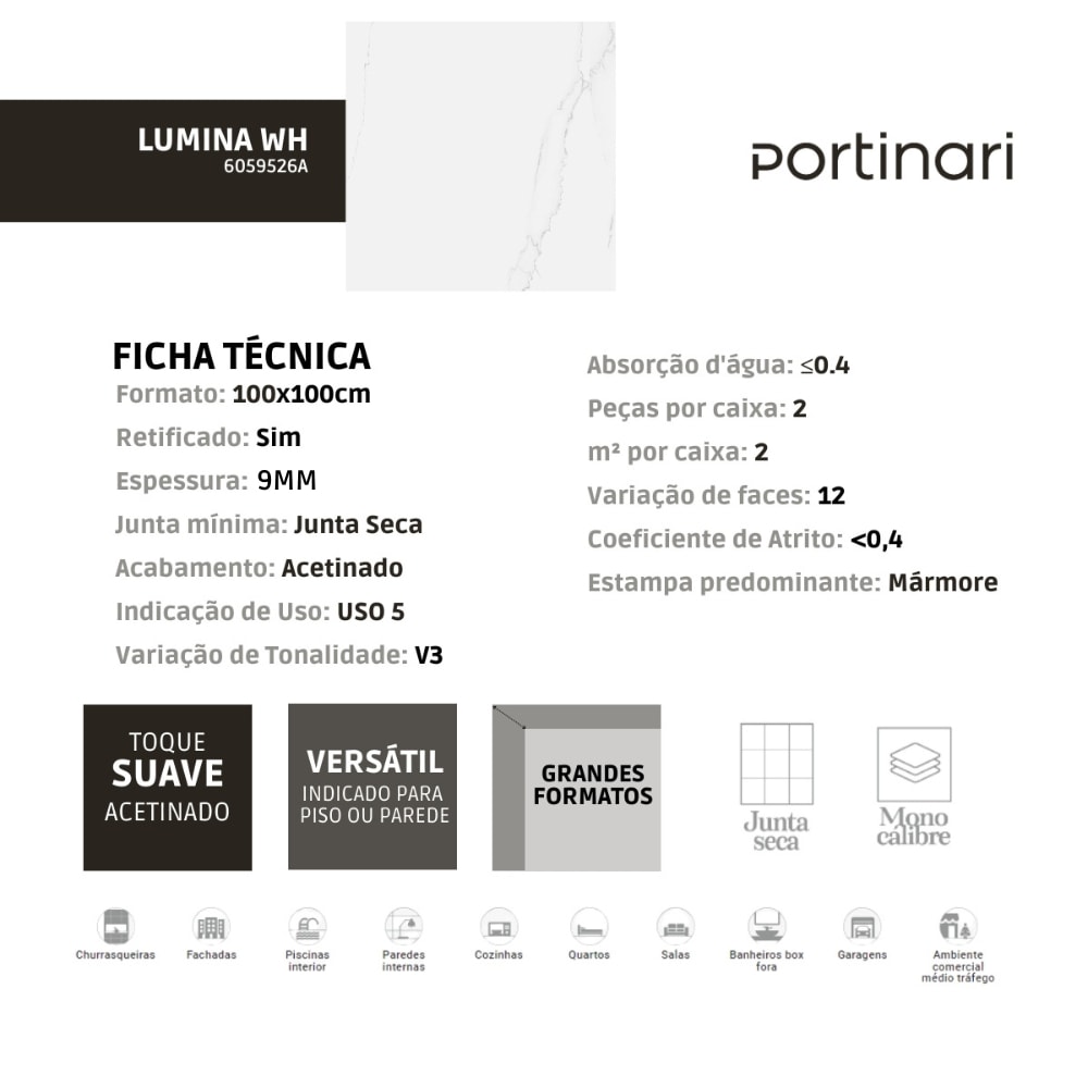 | Garantia | A fabricante garante a manutenção das especificações dos produtos pelo período de 05 (cinco) anos, contados a partir da data de compra da Nota Fiscal, desde que devidamente aplicados de acordo com a norma NBR’s 13753/ 13754/13755 de instalação de cerâmica |