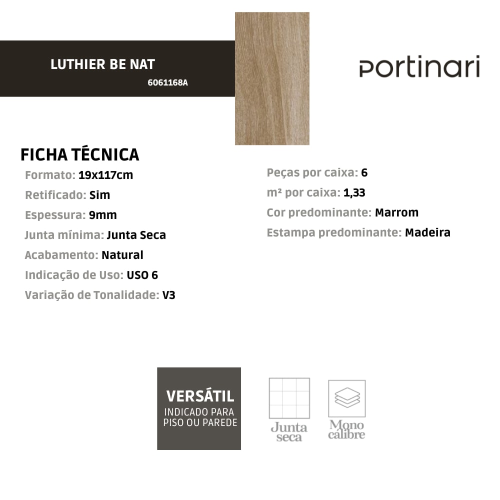 O Porcelanato Portinari Luthier Be Natural 20x120cm Retificado é uma escolha refinada para revestir ambientes internos com elegância. Seu acabamento natural proporciona um visual sofisticado e atemporal, enquanto as dimensões de 20x120cm são ideais para espaços amplos. A tecnologia retificada garante bordas precisas, conferindo um encaixe perfeito e moderno. Adequado para diversas áreas residenciais, o Luthier Be Natural destaca-se pela sua versatilidade, integrando-se harmoniosamente a diferentes estilos de design de interiores, resultando em ambientes visualmente atraentes e contemporâneos.