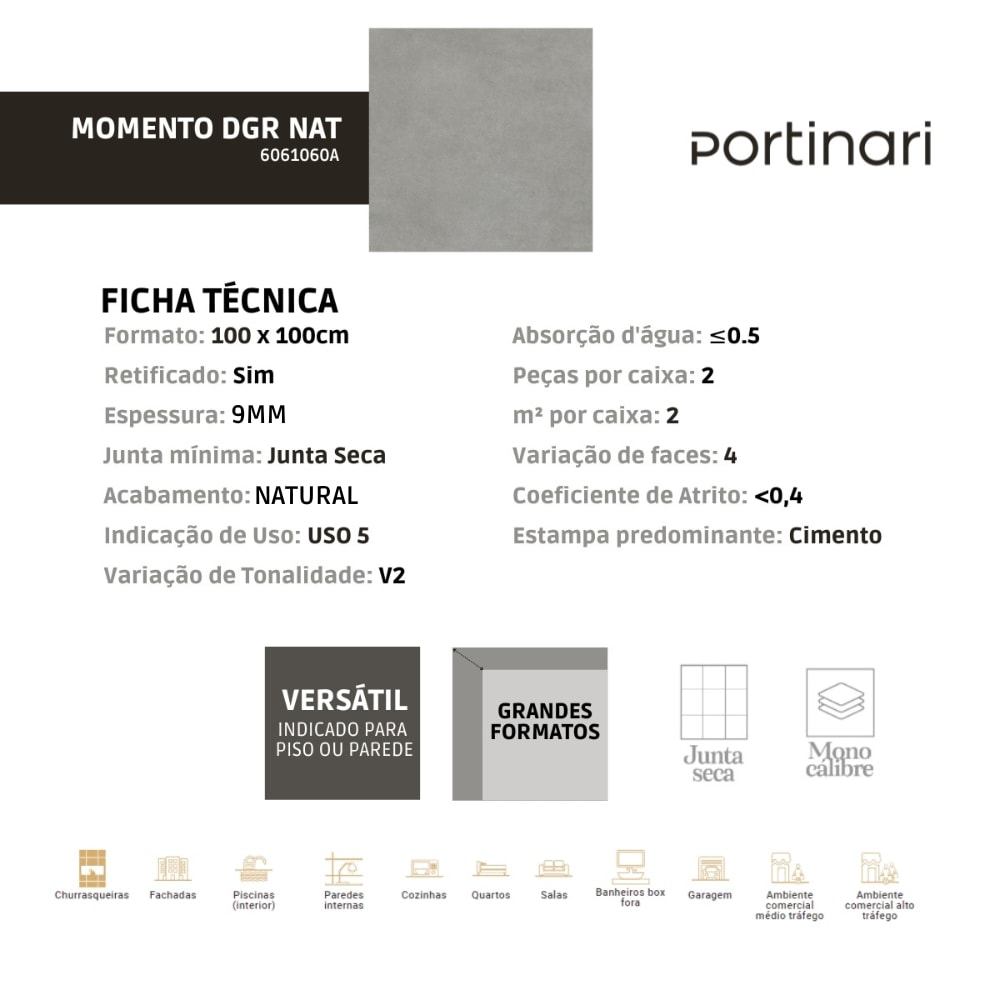 | Garantia | A fabricante garante a manutenção das especificações dos produtos pelo período de 05 (cinco) anos, contados a partir da data de compra da Nota Fiscal, desde que devidamente aplicados de acordo com a norma NBR’s 13753/ 13754/13755 de instalação de cerâmica |