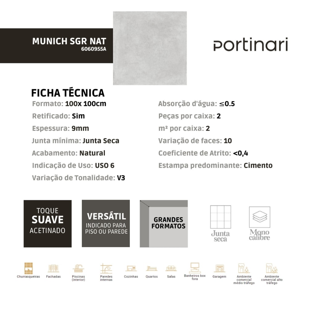 | Garantia | a fabricante garante a manutenção das especificações dos produtos pelo período de 05 (cinco) anos, contados a partir da data de compra da Nota Fiscal, desde que devidamente aplicados de acordo com a norma NBR’s 13753/ 13754/13755 de instalação de cerâmica |