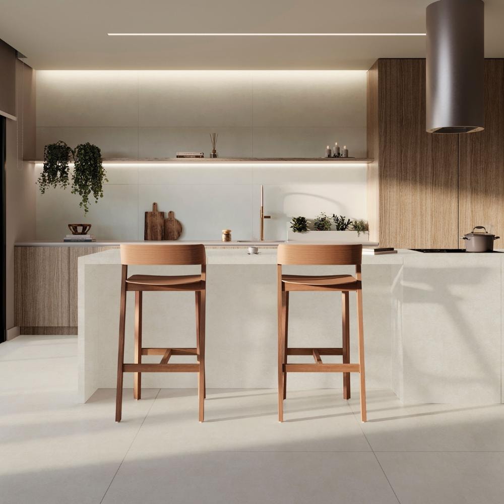 O grande formato 120×120 cm proporciona continuidade visual e sensação de amplitude, reduzindo a presença de juntas e valorizando o acabamento do espaço. O acabamento natural reforça a estética discreta do porcelanato, com toque agradável e aparência uniforme. As bordas retificadas garantem um assentamento preciso, resultando em um visual limpo e refinado. Uma escolha ideal para projetos que buscam elegância, funcionalidade e design duradouro.