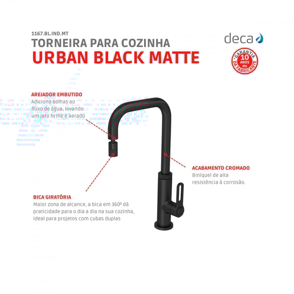 A Torneira de Mesa para Cozinha com Bica Móvel Urban Black Matte Deca é a escolha perfeita para adicionar estilo e funcionalidade à sua cozinha. Com seu acabamento em black matte, ela oferece um visual moderno e sofisticado. A bica móvel permite maior flexibilidade ao utilizar a torneira, facilitando a lavagem de louças e alimentos. Além disso, a torneira possui controle de temperatura e fluxo de água, proporcionando maior conforto e economia. Adquira agora a Torneira de Mesa para Cozinha com Bica Móvel Urban Black Matte Deca e transforme sua cozinha em um ambiente prático e elegante.