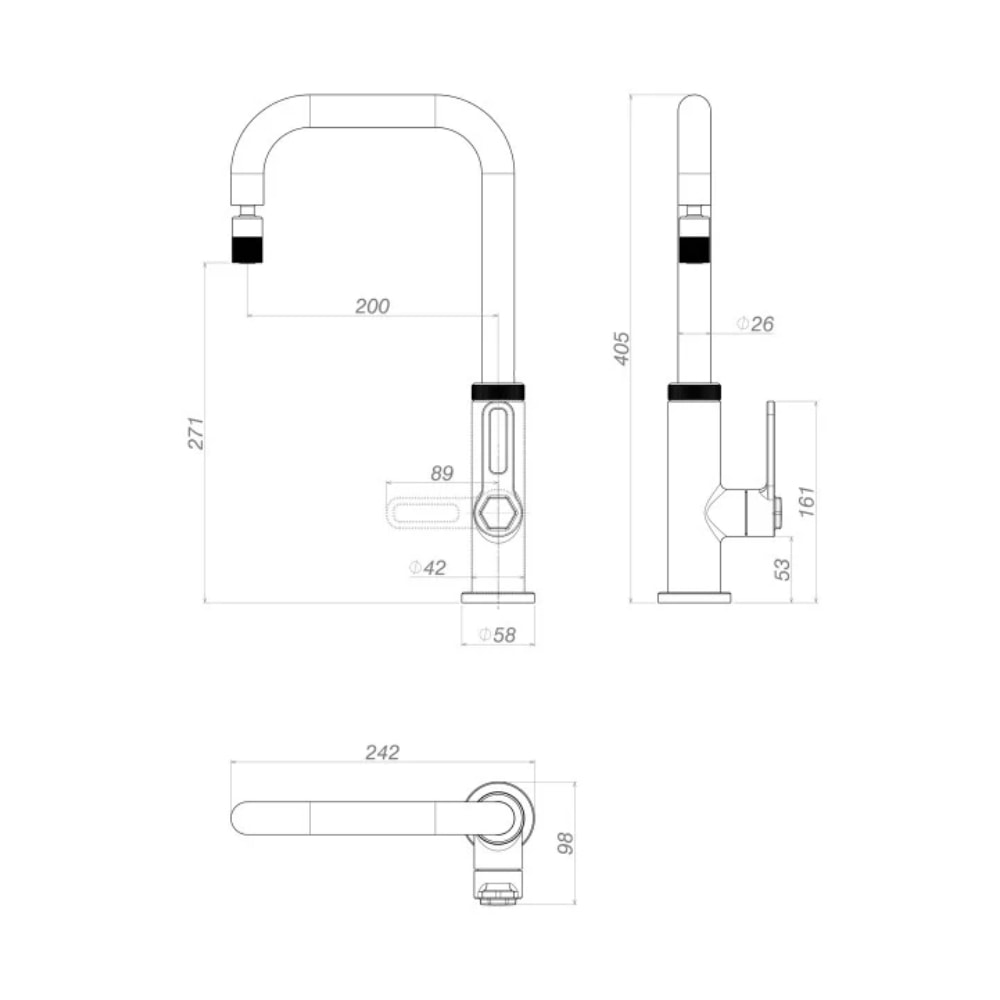 - Bica giratória: A bica giratória nas torneiras, monocomandos e misturadores de cozinha entregam facilidade e agilidade para uma cozinha prática. Com maior zona de alcance, a bica em 360º dá praticidade para o dia a dia na sua cozinha, ideal para projetos com cubas duplas