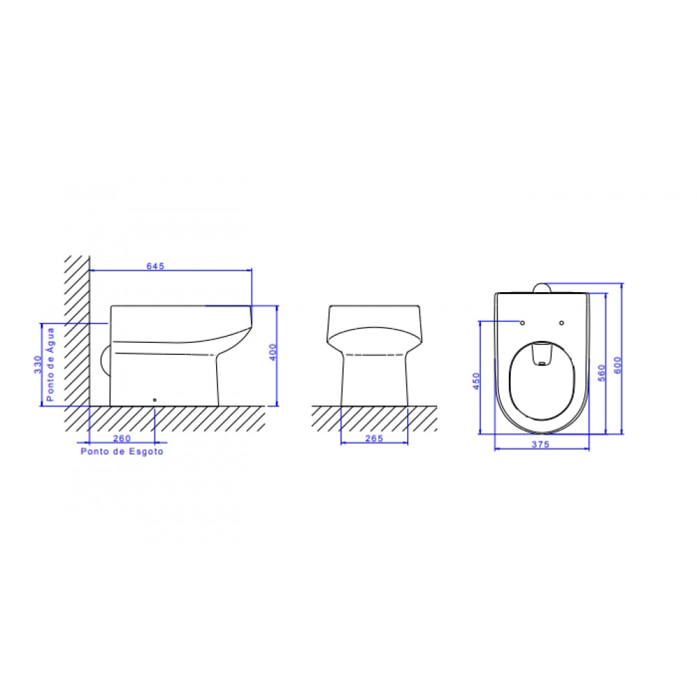 Atenção: O produto Vaso Sanitário não acompanha caixa acoplada ou acessórios.