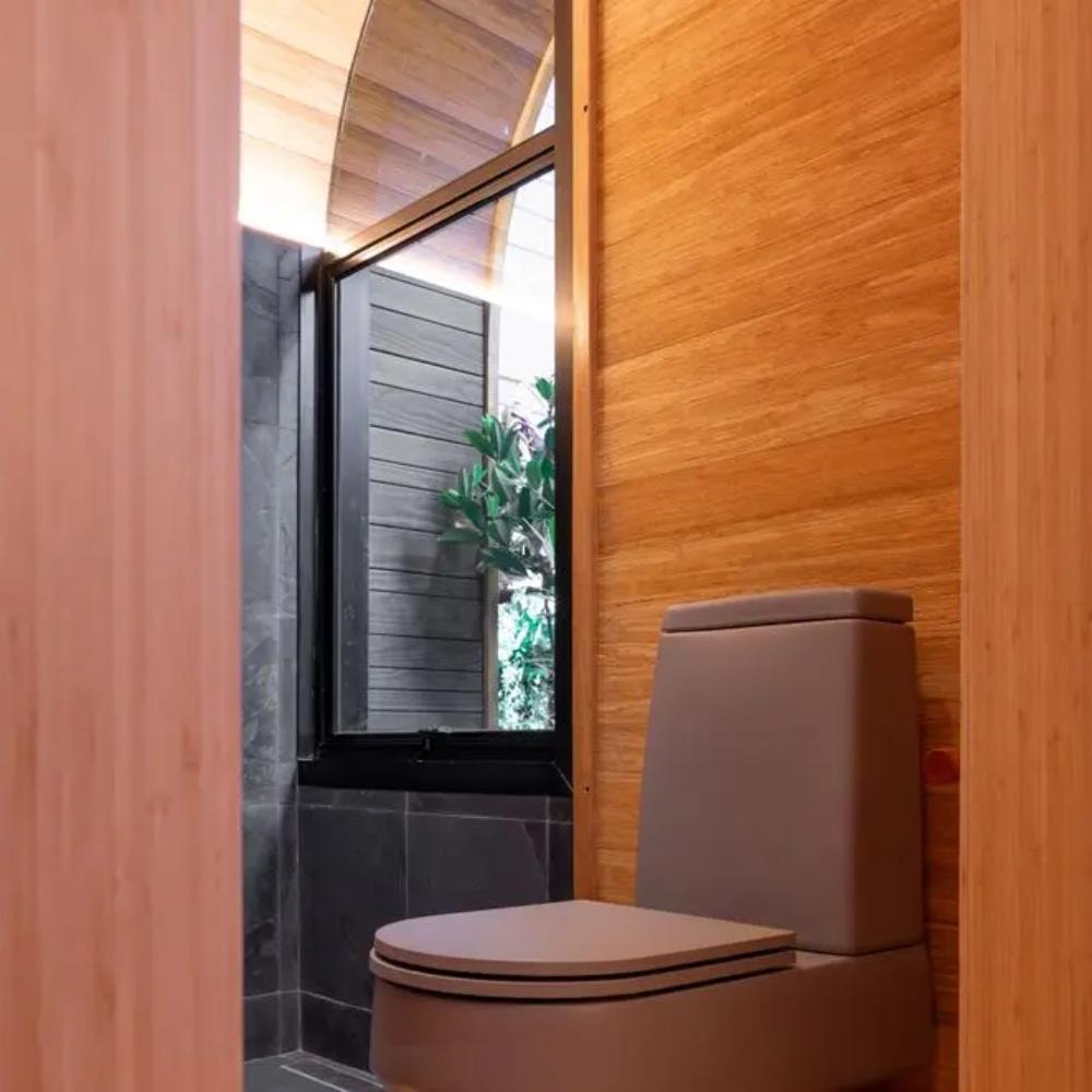- Cor cinza antracite, moderna e sofisticada, tendência em banheiros contemporâneos.